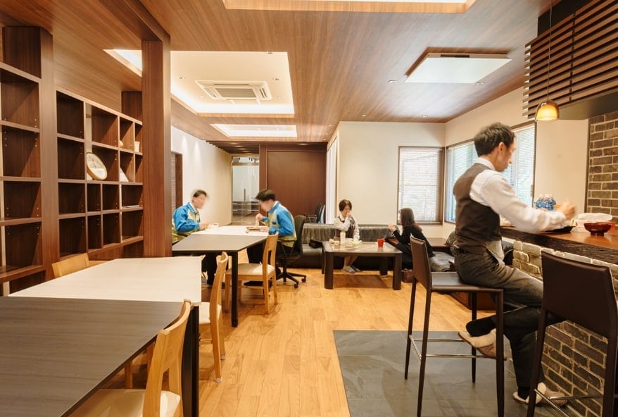 現場によっては作業場所が遠方になることも。太宰府にある全17部屋の寮は、現場に合わせて自由に使用することができます。優しい寮母さんが作るご飯が美味しいと社員に好評です。