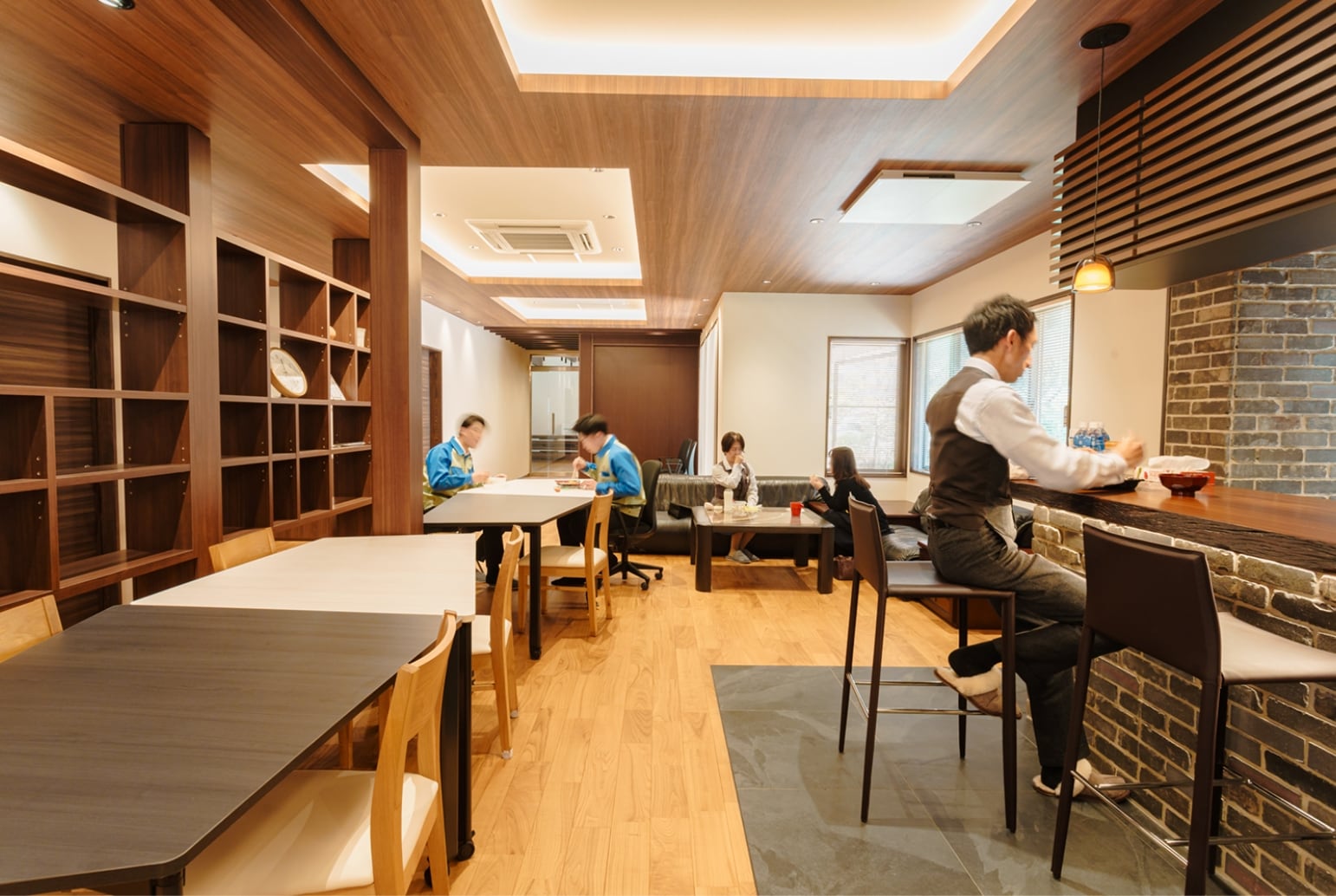 2023年10月に完成したばかりの新施設。お客様とのお打ち合わせでの利用や、社員がお昼休憩で利用しています。休憩時間には社員同士で卓球をすることも!他の社員と交流を図ることができる、憩いの場になっています。
