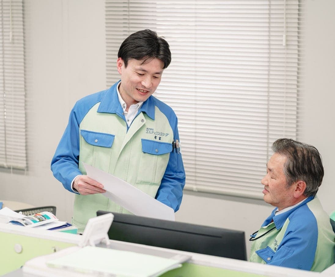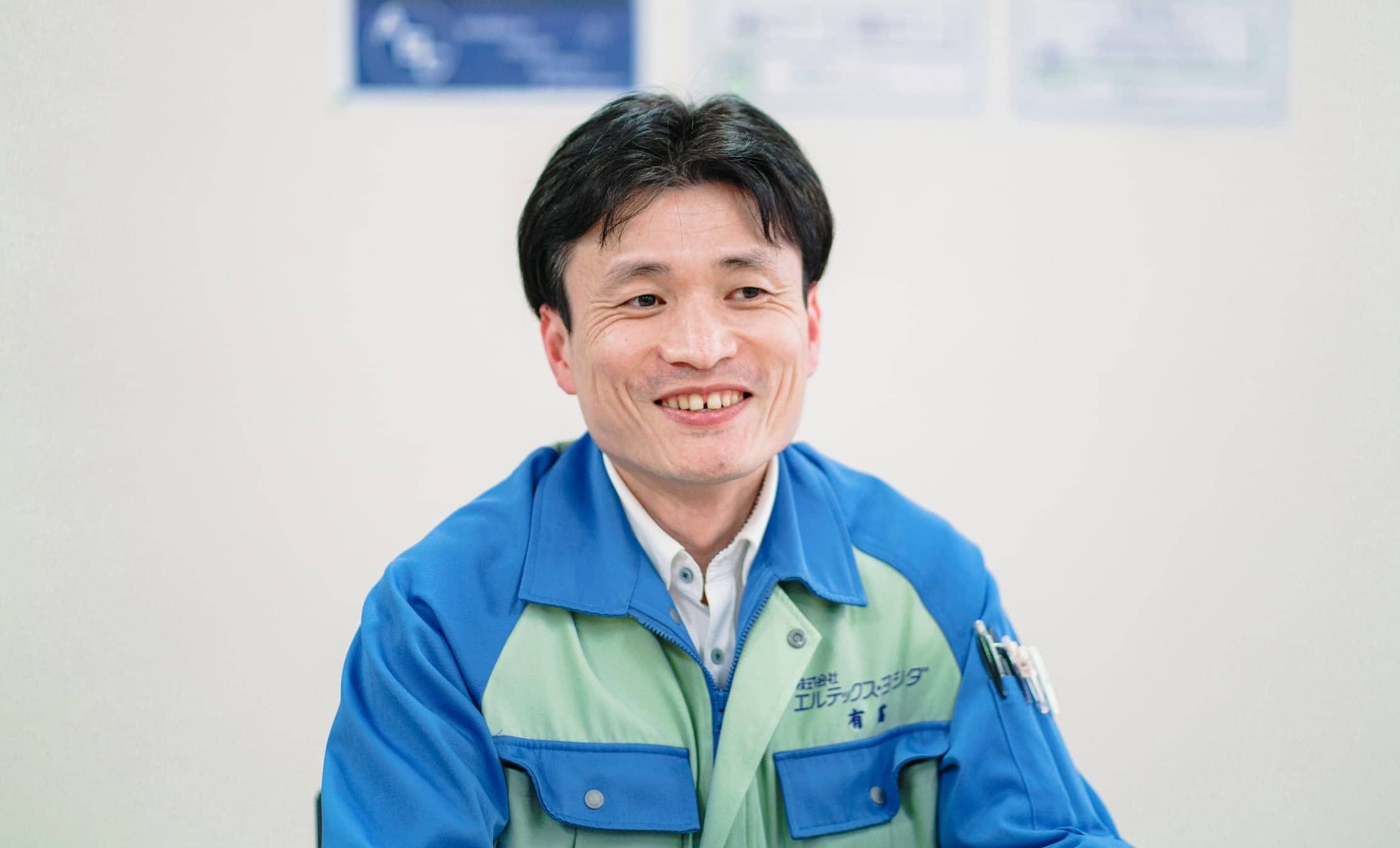 2005年新卒入社、ビジネス系の専門学校卒。たまたま卒業生の先輩がエルテックス・ヨシダに勤めており、その縁もあって入社。当初の配属は総務部。さまざまな部署の仕事をするジョブローテーションの中で、工務部を経て、現在は企画営業部へ。